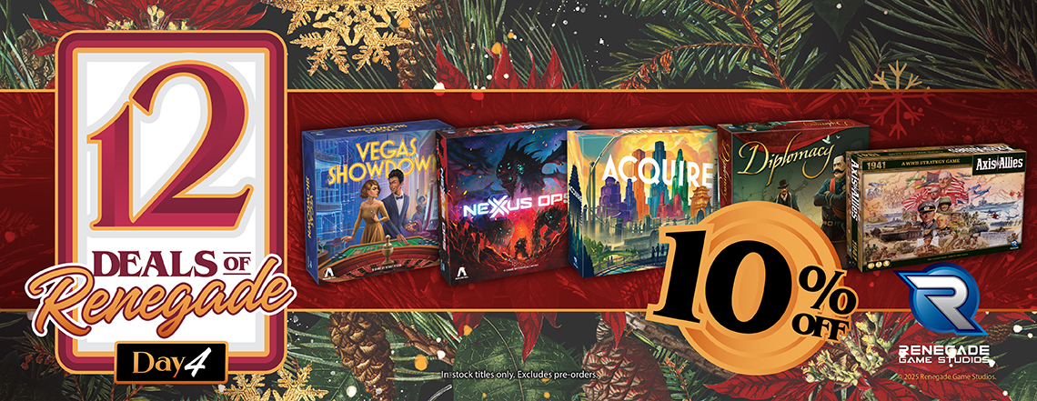 Nothing screams "season's greetings" quite like saving on strategy games (for us anyway!) Today's deal includes 10% off Vegas Showdown, Nexus Ops, Acquire, Diplomacy, and Axis & Allies 1941! Read on to learn more about these classic, crowd-pleasing games!