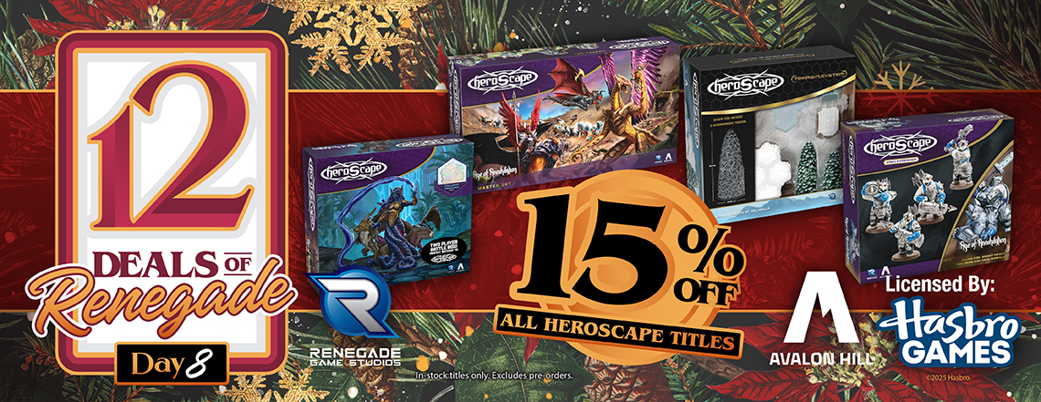 It's day 8 of the 12 Deals of Renegade, and today is a big one! Save 15% on all in-stock Heroscape titles! New to Heroscape? Don't worry we've broken down some of the best boxes to get you started!