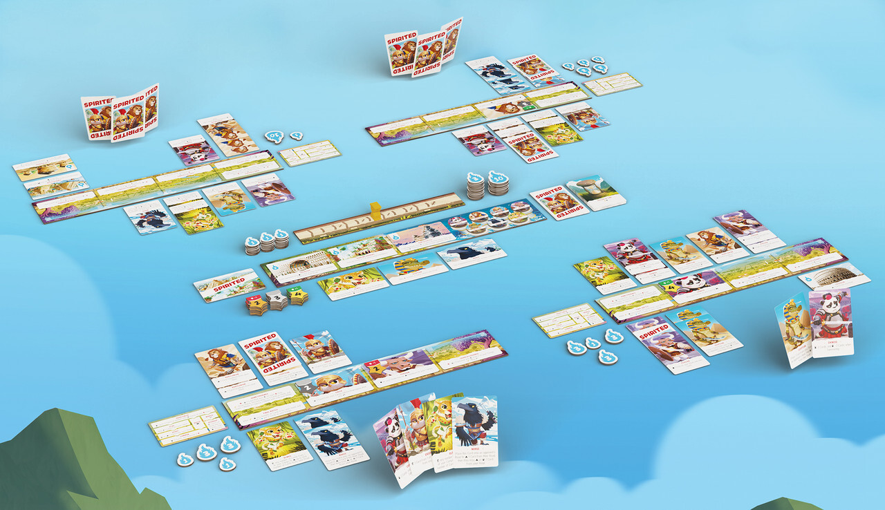 In Spirited, you want to have the most spirit after the final battle. Players gain spirit by marching with clans to forge allegiances, fighting in battles, and building wonders. The clan draw pile contains three "Passing of Time" cards that advance the game one step closer to the final battle when revealed.